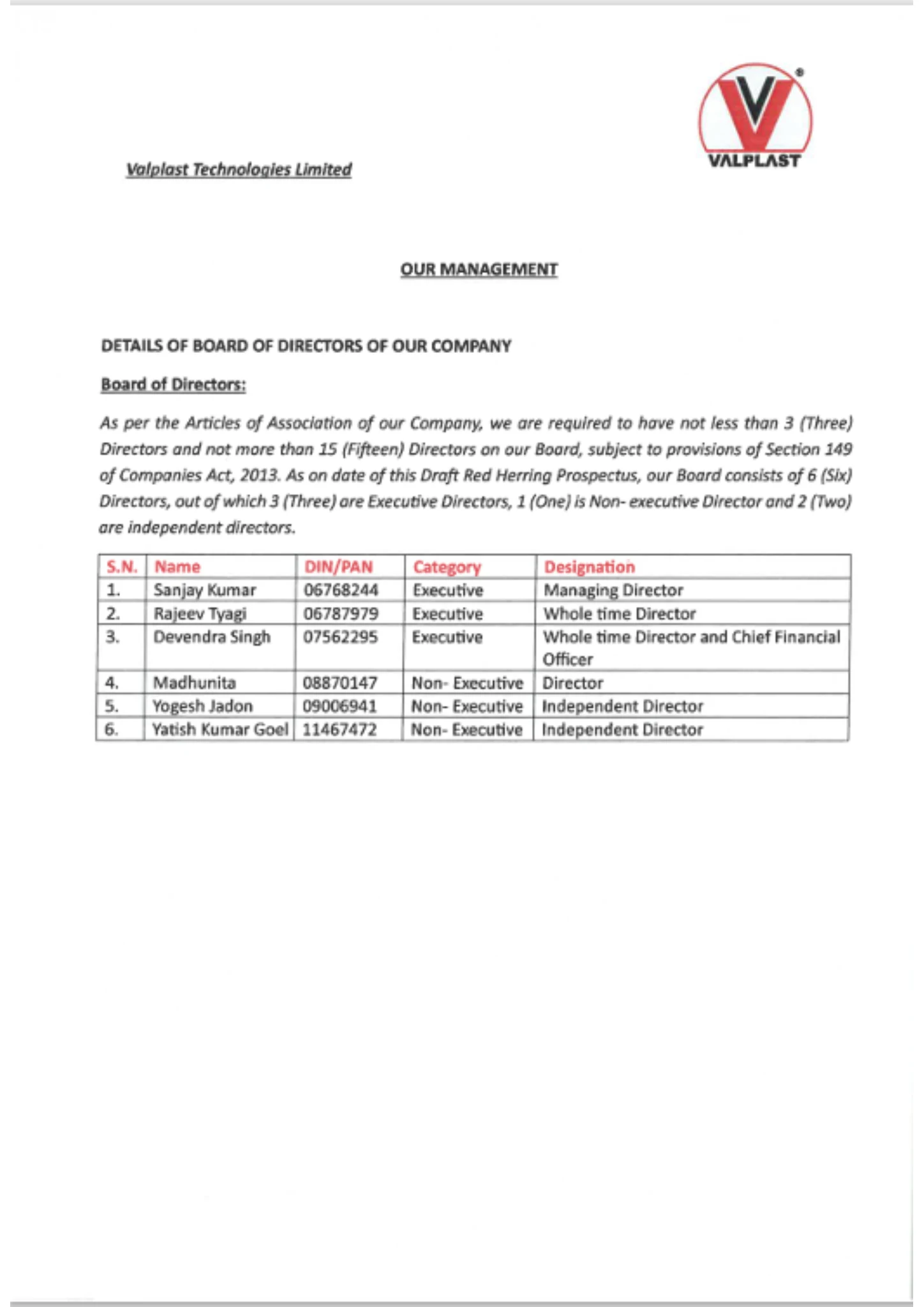 VALPLAST TECHNOLOGIES LTD
