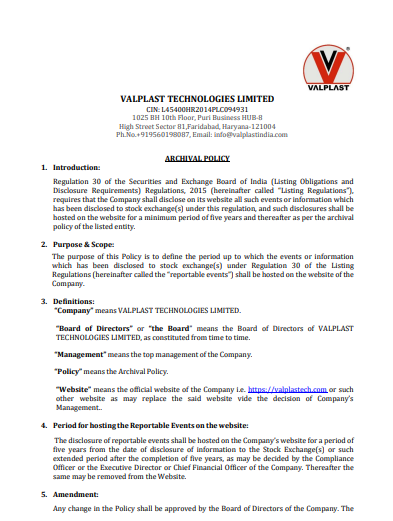 ARCHIVAL POLICY
