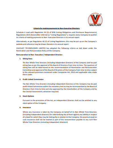Criteria for making payments to Non-Executive Directors