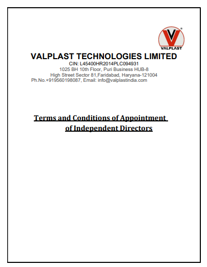 Terms and Conditions of Appointment of Independent Directors