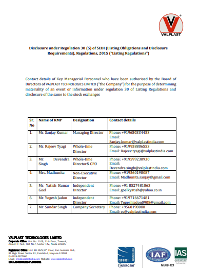 Disclosure under Regulation 30